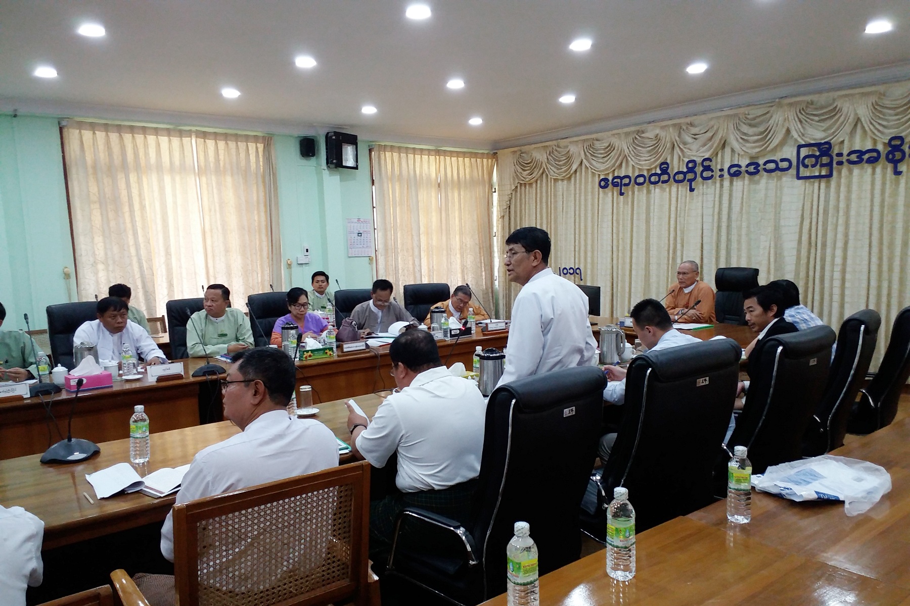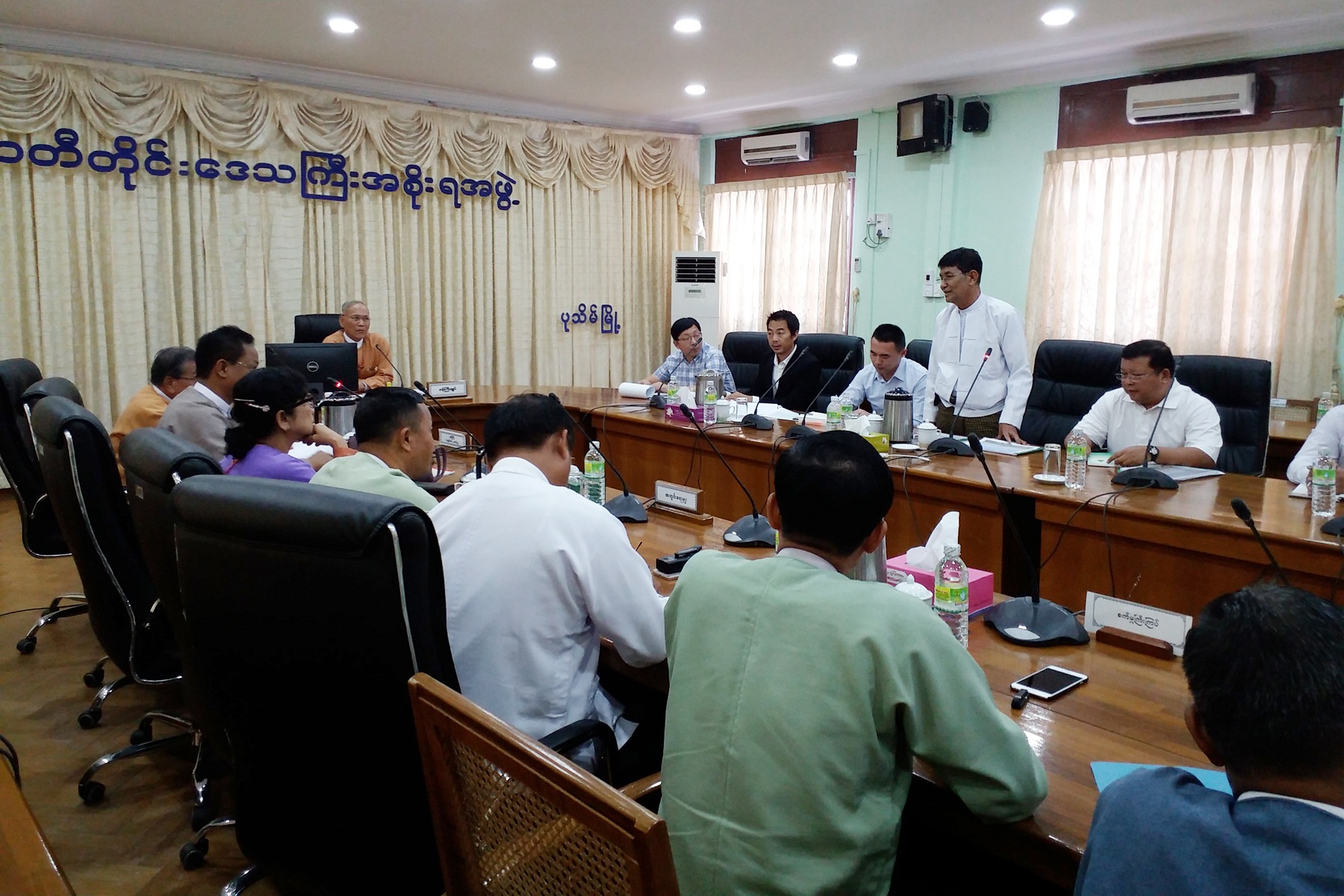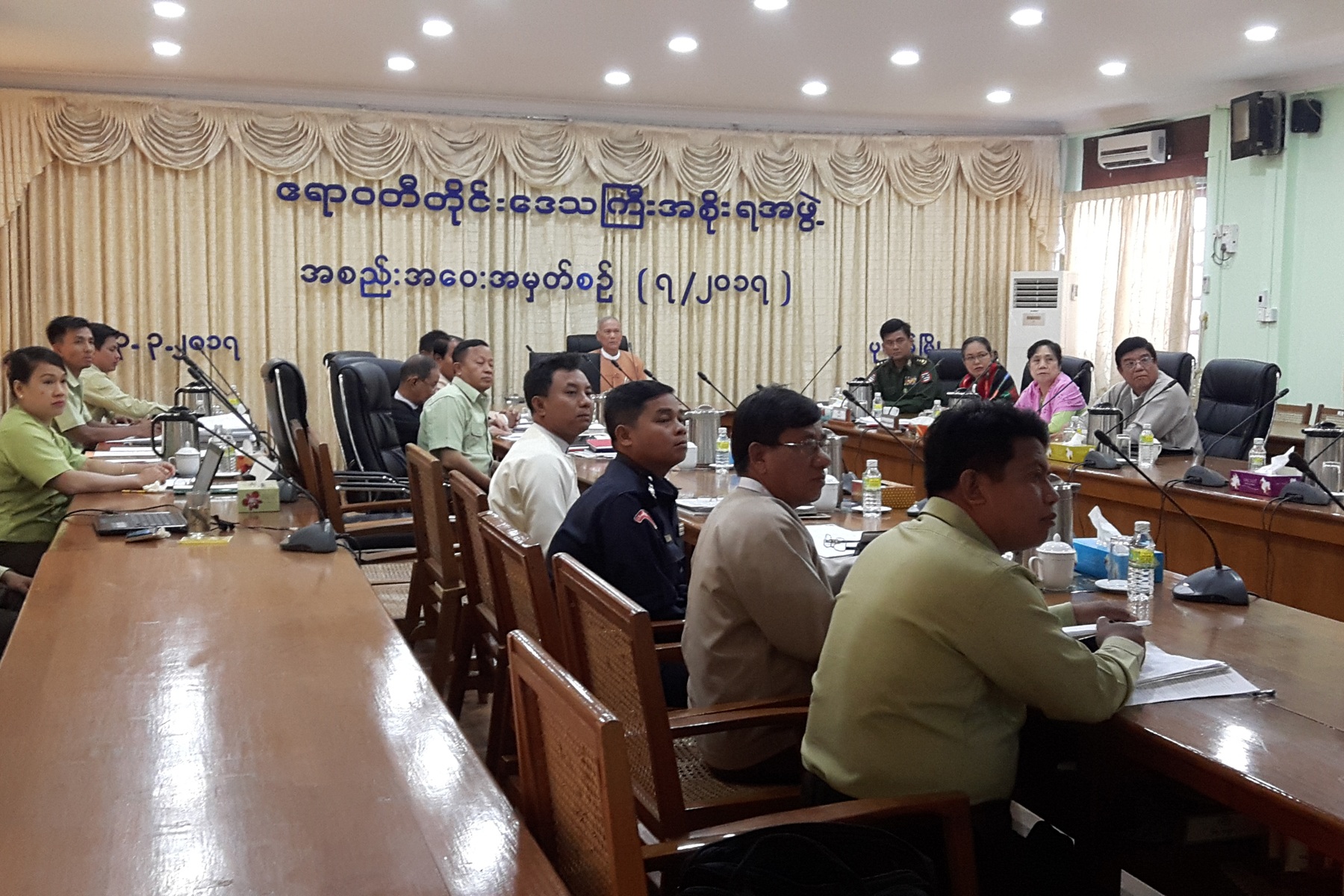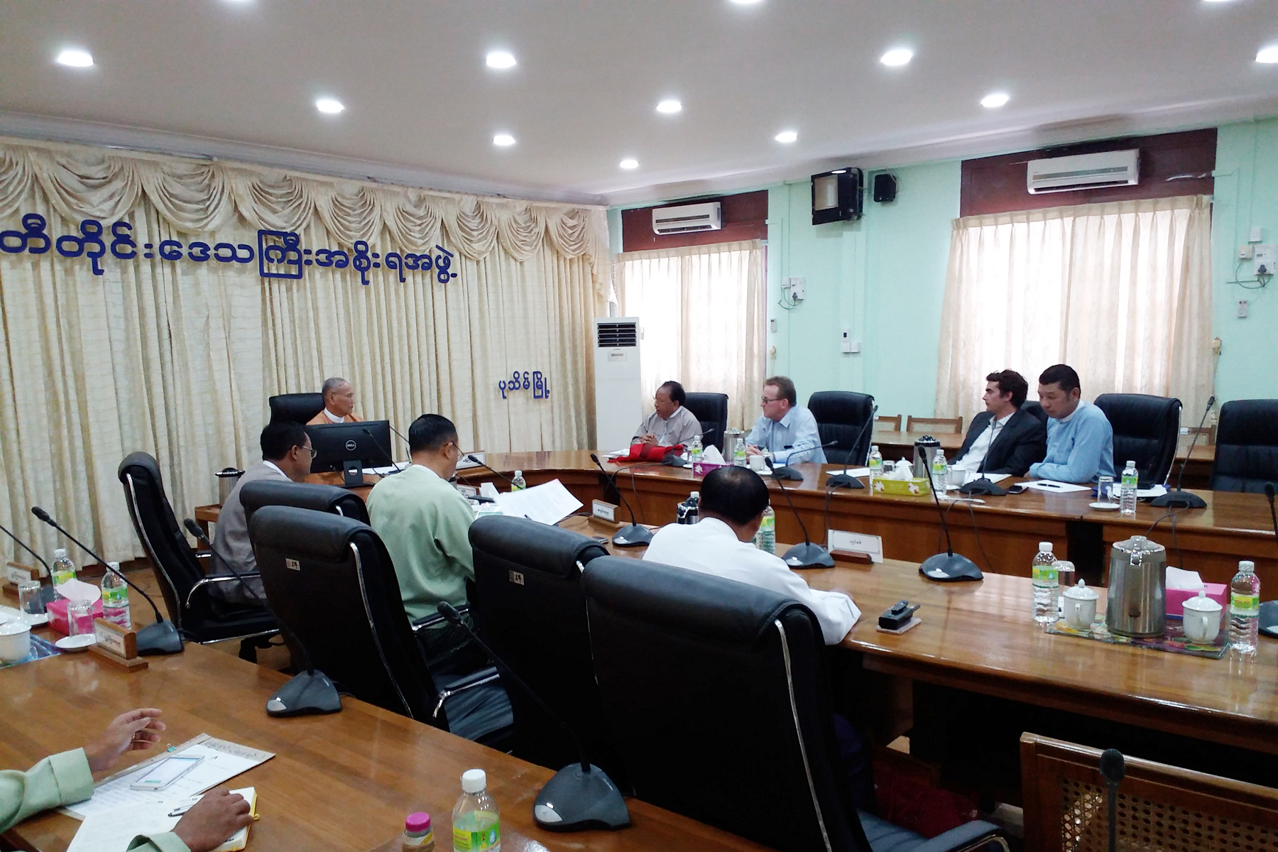 ဧရာဝတီတိုင်းဒေသကြီးအစိုးရအဖွဲ့ဝင် လျှပ်စစ်၊ စွမ်းအင်၊ စက်မှုလက်မှုနှင့်လမ်းပန်းဆက်သွယ်ရေးဝန်ကြီး ဦးဝင်းဌေးသည် (၁.၃.၂၀၁၇)ရက်နေ့တွင် တိုင်းဒေသကြီးအဆင့် တာဝန်ရှိဌာနဆိုင်ရာများနှင့်အတူ ဧရာဝတီတိုင်းဒေသကြီးအစိုးရအဖွဲ့ရုံး အစည်းအဝေးခန်းမ (၂)၌ Fujita Co.,Ltd တာဝန်ရှိသူများအား စပါးခွံမှ လျှပ်စစ်ဓာတ်အားစက်ရုံတည်ဆောက်ရန်ကိစ္စနှင့်ပတ်သက်၍ လာရောက်ဆွေးနွေးမှုအား လက်ခံတွေ့ဆုံခဲ့ပါသည်။