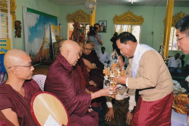 ဧရာဝတီတိုင်းဒေသကြီးအစိုးရအဖွဲ့ ဝန်ကြီးချုပ်ဦးသိန်းအောင်နှင့် ဇနီးဒေါ်ခင်ဌေးမြင့်တို့သည် ၂၀၁၅ခုနှစ်၊ မတ်လ(၃၁)ရက်နေ့ နံနက်(၀၇၁၅)နာရီအချိန်တွင် အနောက်တောင်ပိုင်းစစ်ဌာနချုပ် တိုင်းမှူး၊ တိုင်းဒေသကြီးအစိုးရအဖွဲ့ဝင် ဝန်ကြီးများ၊ တိုင်း/ခရိုင်/မြို့နယ်အဆင့်တာဝန်ရှိဌာနဆိုင်ရာများနှင့်တူ ရေကြည်မြို့နယ်၊ အသုတ်မြို့ရှိ အောင်စင်္ကြာစေတီစိန်ဖူးတော်၊ ငှက်မျက်နားတော်၊ ရွှေထီးတော်တင်လှူပွဲအခမ်းအနားသို့တက်ရောက်ခဲ့ပါသည်။