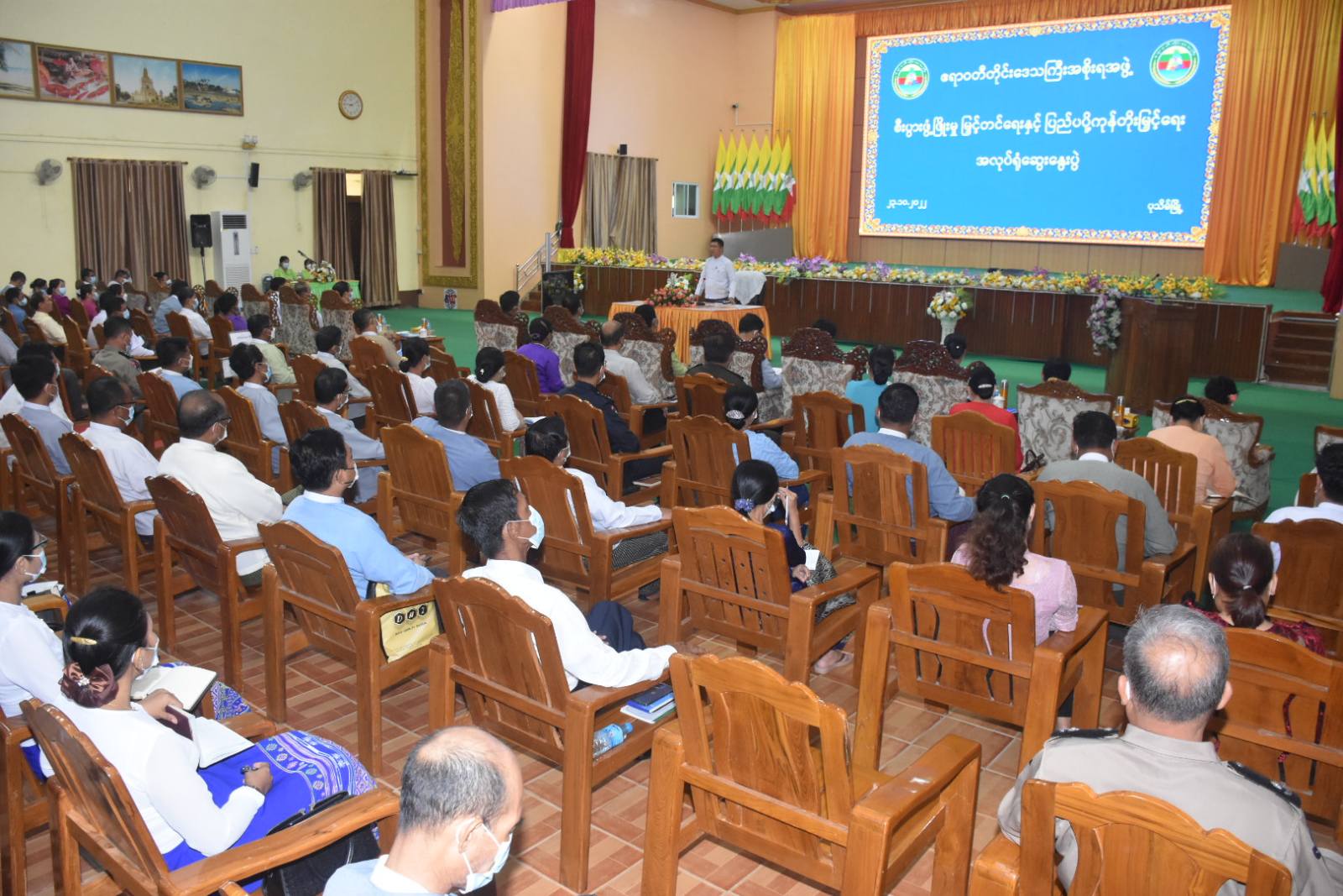 ဧရာဝတီတိုင်းဒေသကြီး ဝန်ကြီးချုပ် ဦးတင်မောင်ဝင်း ပါတီစုံ ဒီမိုကရေစီ အထွေထွေ ရွေးကောက်ပွဲ မဲဆန္ဒရှင်စာရင်းများ ပြည့်စုံမှန်ကန်ရေးနှင့် မဲရုံအရေအတွက် လျာထား သတ်မှတ်ခြင်းဆိုင်ရာ ညှိနှိင်းအစည်းအဝေးသို့တက်ရောက်